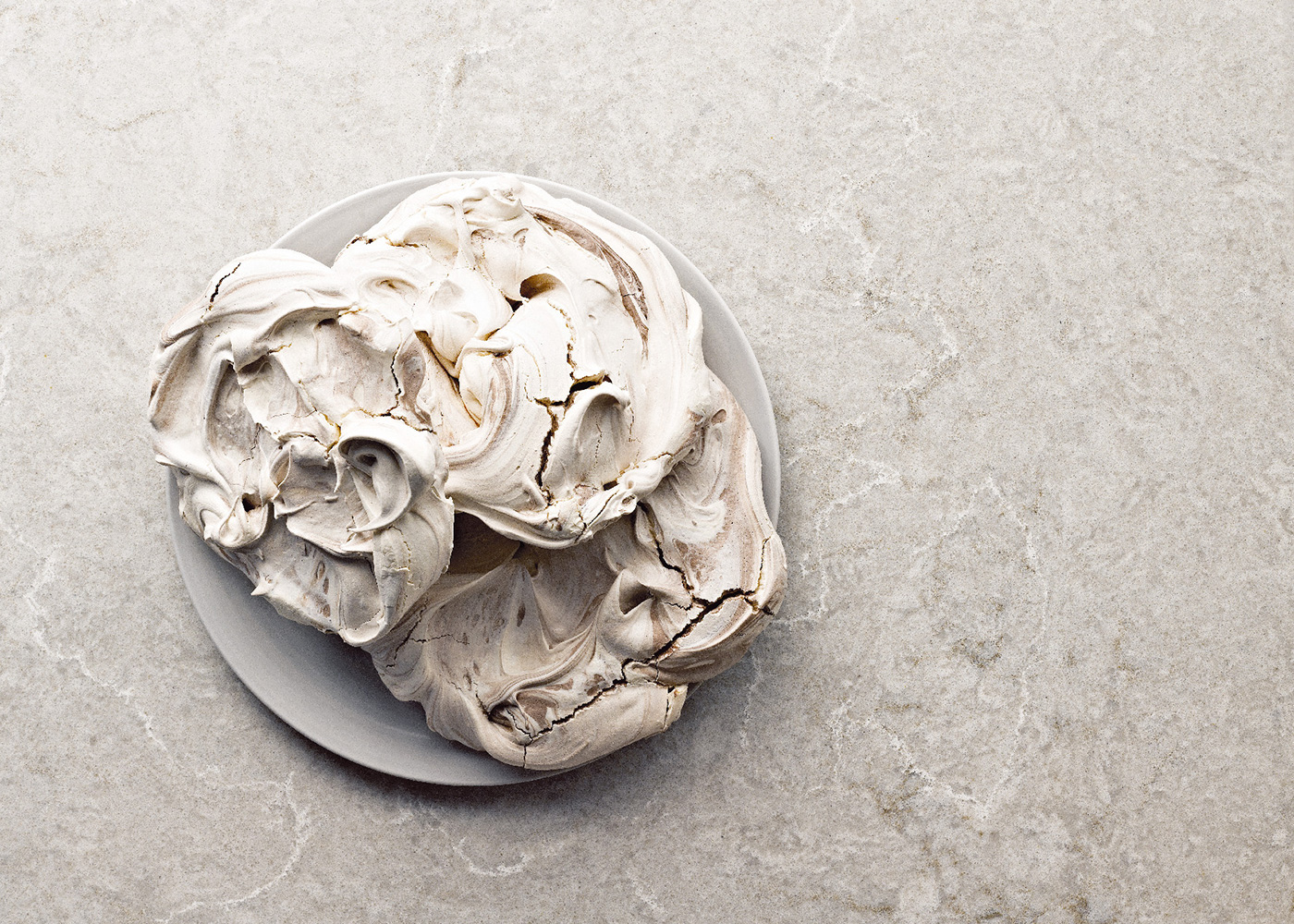 Kahvatu, läikiv lõuend, mis on läbi imbunud helepruunide õrnatest keerulistest pritsmetest, segatud uduhallidega, mis põimuvad kokku.